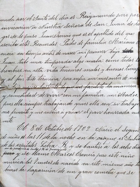 gos se le puso Juan:Orencio que es el apellido del que escribe estos Recuerdos Padre de familia Mariano O
